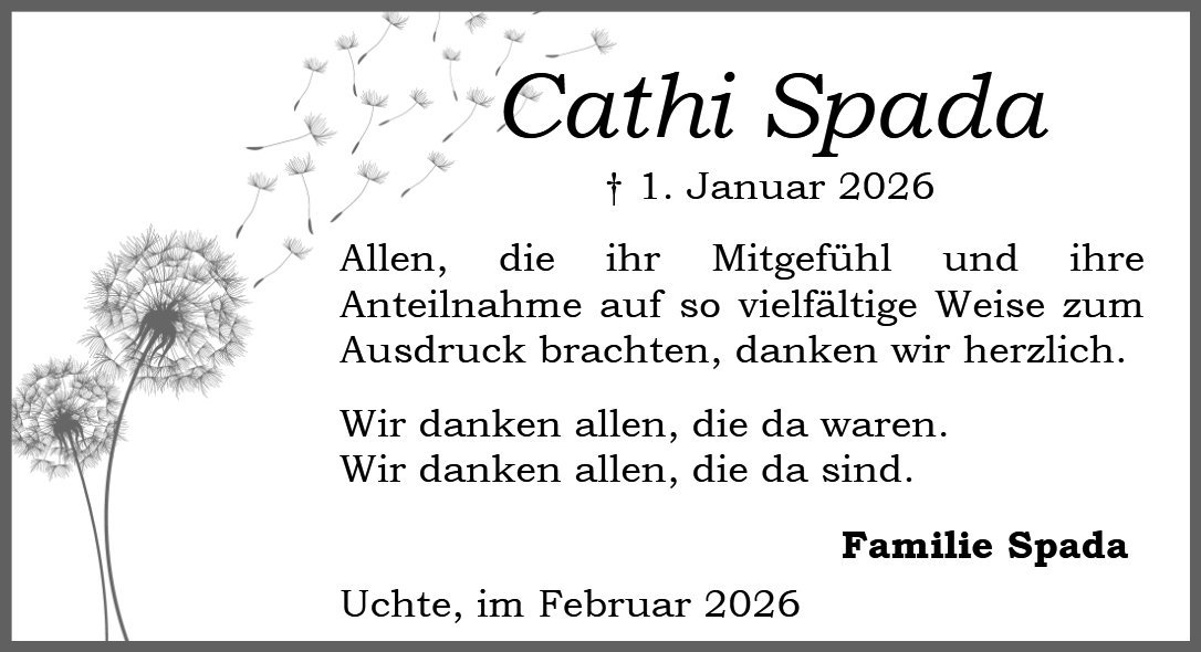 Cathi war ein so positiver Mensch. Ich behalte sie in lieber Erinnerung. Mein besonderer Beileid geht an ihre Mutter Marie Luise aber auch an Chathis Familie. In stillem Gedenken Käthe Helms