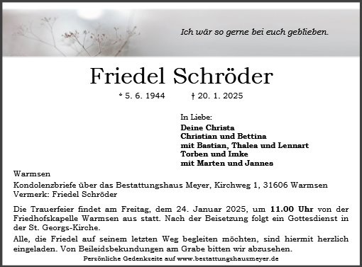 geboren am 5. Juni 1944 gestorben am 20. Januar 2025