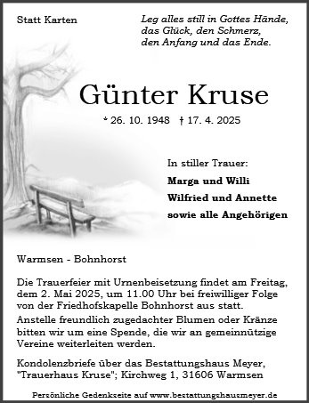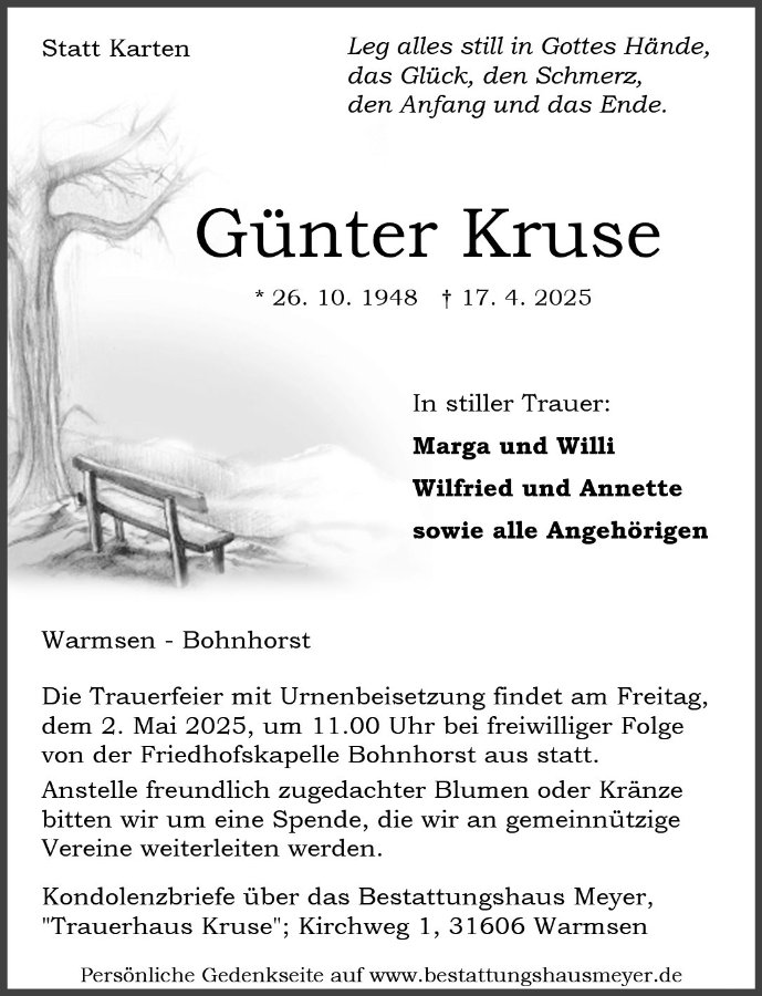 geboren am 26. Oktober 1948 gestorben am 17. April 2025