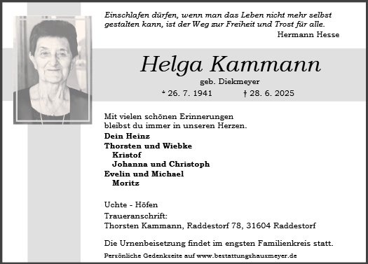 geboren am 26. Juli 1941 gestorben am 28. Juni 2025
