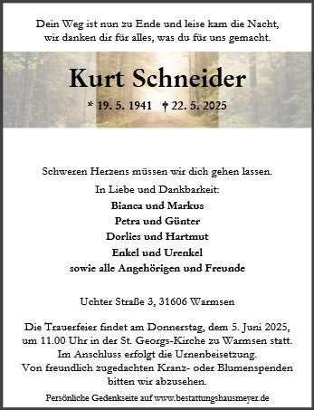 geboren am 19. Mai 1941 gestorben am 22. Mai 2025