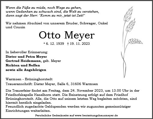 geboren am 6. Dezember 1939 gestorben am 19. November 2023