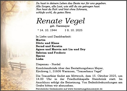 geboren am 14. Oktober 1944 gestorben am 8. Oktober 2025