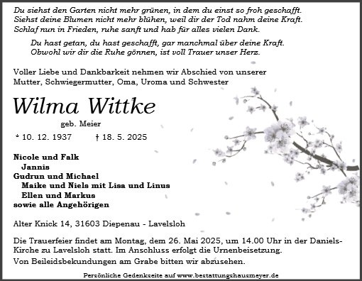 geboren am 10. Dezember 1937 gestorben am 18. Mai 2025